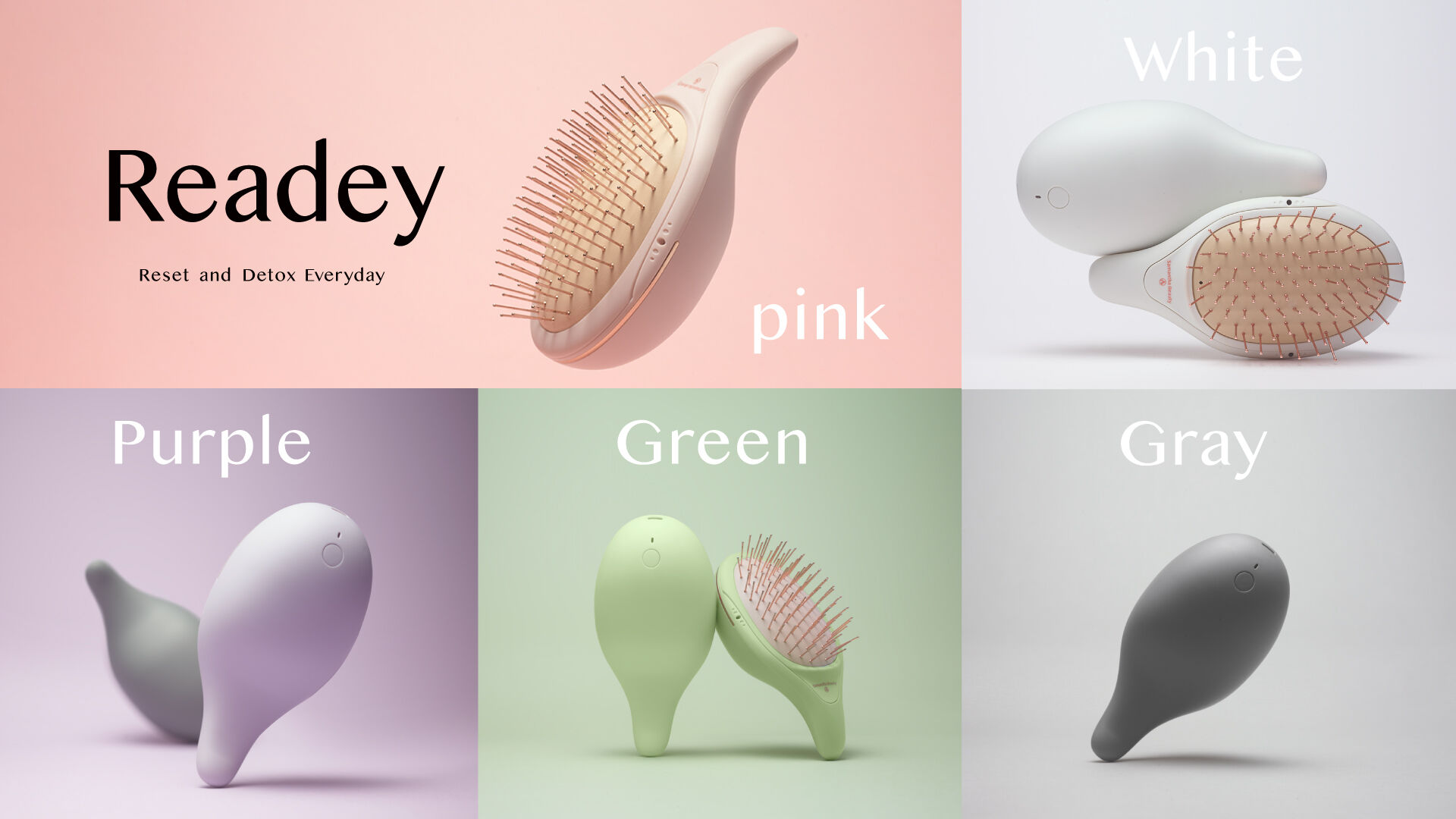 コロンとした見た目もかわいいのがツインマイナスイオン リセット&デトックス ブラシ「Readey-リアデイ-(8,800円)」。髪の毛のキューティクルを整えるとともに、やわらかいクッションにセッティングされた 88 本のメタルピンが、ひんやり気持ちよく頭皮を刺激し、緊張をやさしくほぐしてくれます。 また、左右2箇所の出口からマイナスイオンを発生させて、頭皮から毛先まで髪全体にマイナスイオンを届けてくれるので、潤いと纏まりのあるツヤ髪が完成します。