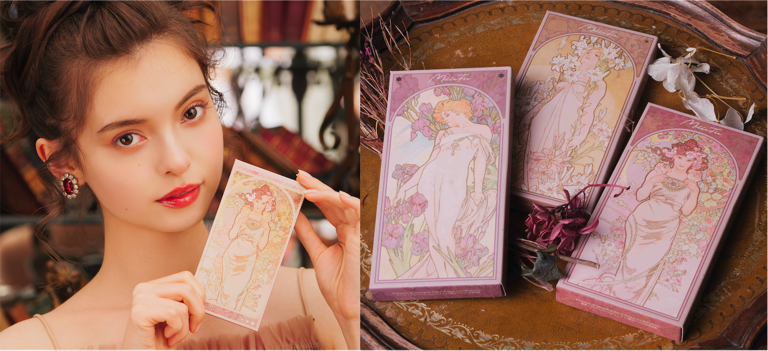 「絵画アイシャドウパレット」が人気のミルフィー(MilleFée)。ゴッホやモネなどの絵画をモチーフとした「絵画アイシャドウパレット」が人気のミルフィーからミュシャの絵画をモチーフにした「レディフラワーパレット」が登場しました。