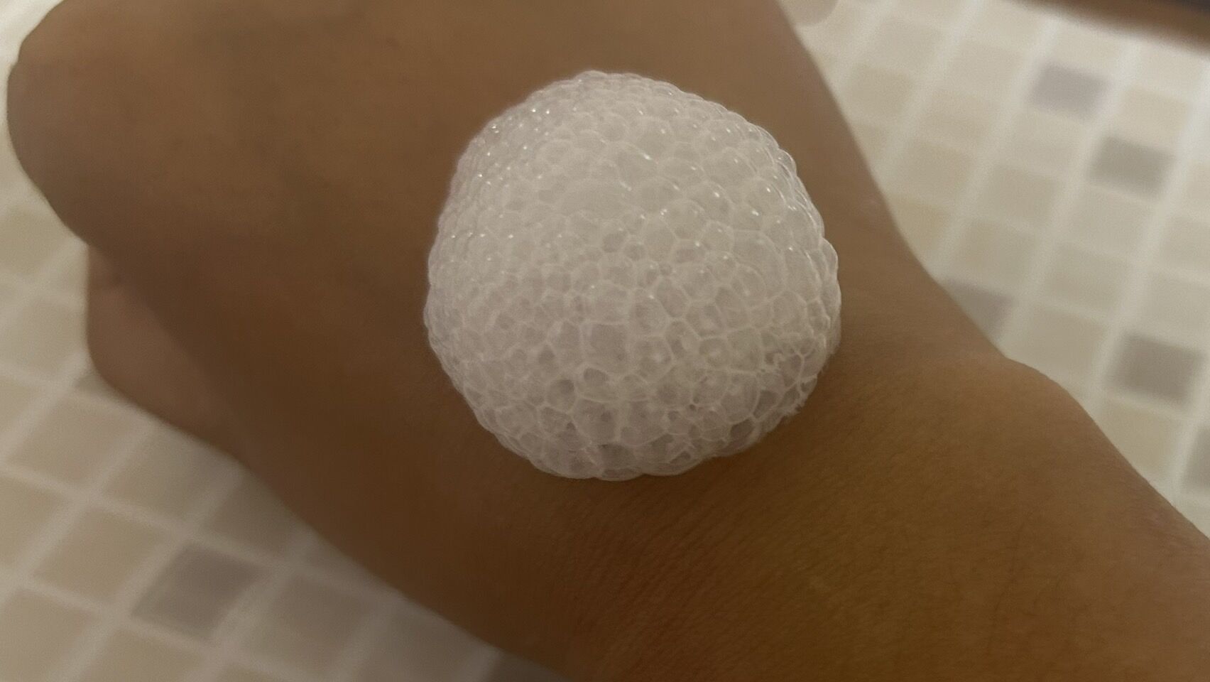 パチパチとはじける泡はひんやりと気持ちよく、この季節にはぴったり。泡を肌に塗り広げると肌もさっぱりし、べたつきもありません。