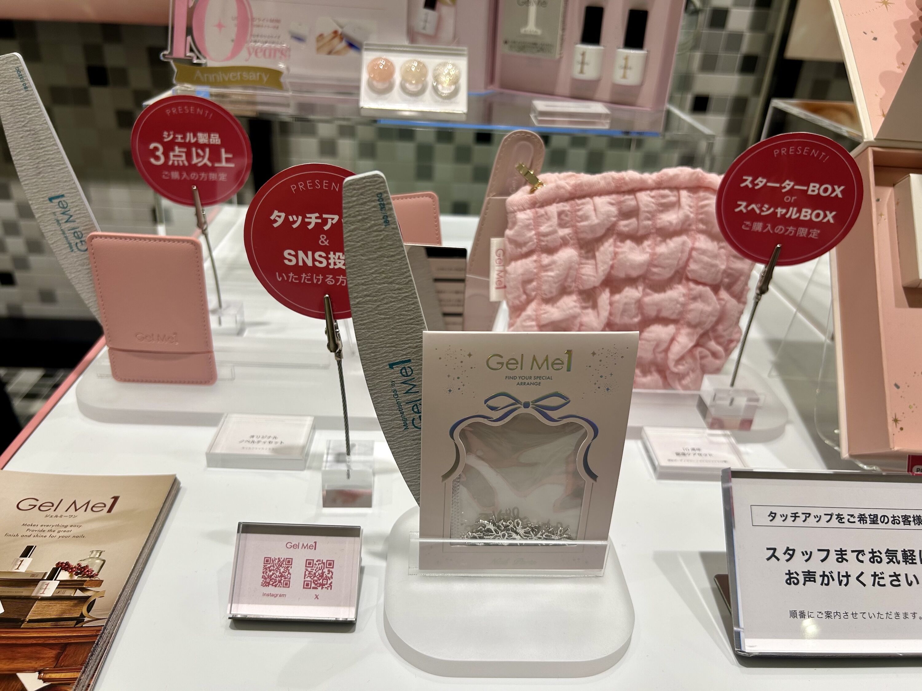 期間中に スターターボックス(¥6,200)または、5色スペシャルボックス(¥7,700)購入でケアセットプレゼント(ポーチ、ガラスやすり、ミラー、ロゴ入り限定ネイルファイル)