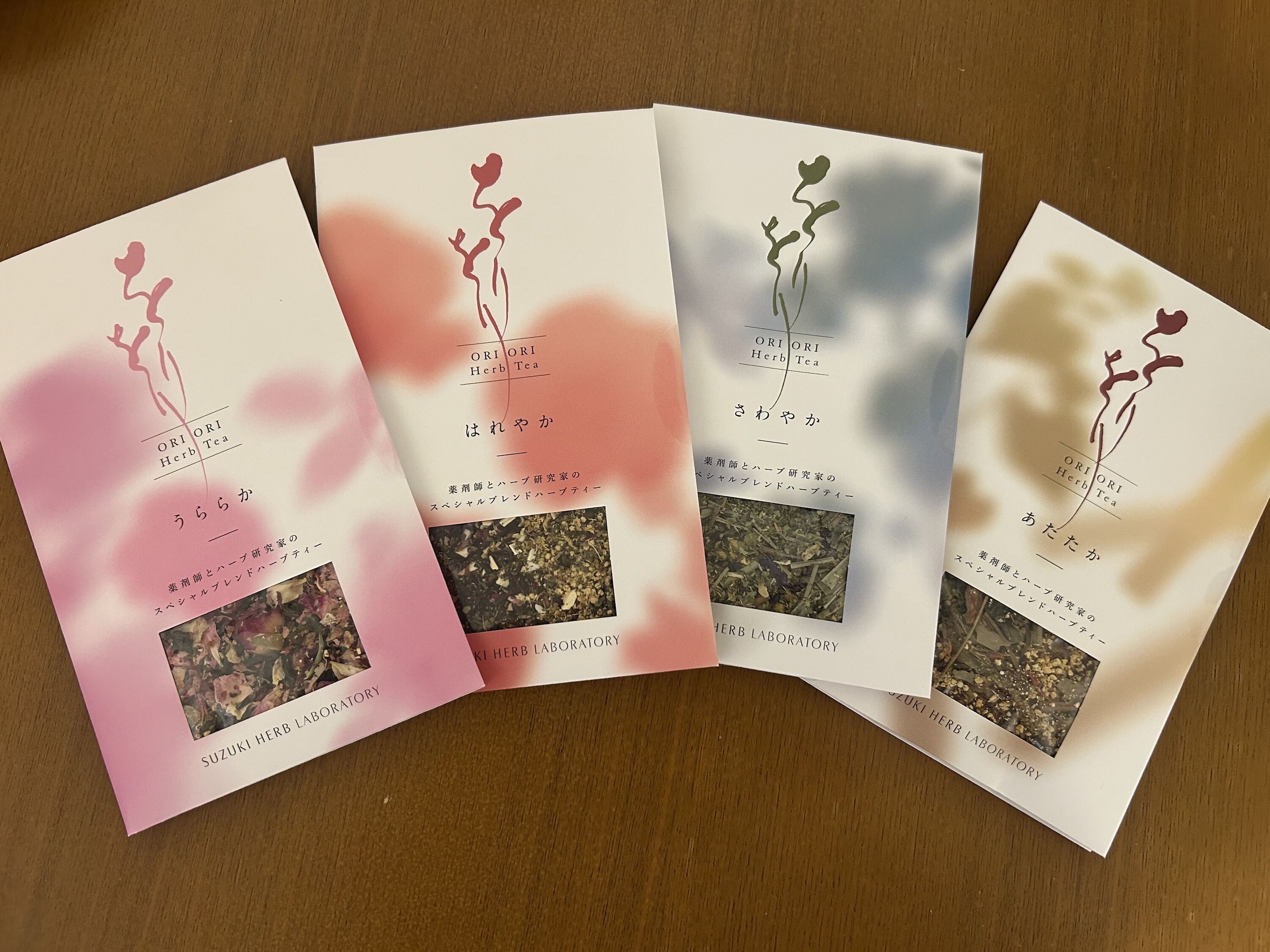 「をりをりハーブティー」は、4つのブレンドから選べるハーブティーシリーズ。ハーブを科学的に研究したスペシャルブレンドで、心と身体のリズムや季節の変化に合わせて選べるのが魅力です。